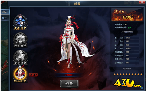 转眼盛夏已过,对男神女神们来说,最重要的事情就是换季添衣,最流行的款式、最合适的颜色,要么觉得都不满意,要么就是每件都想要,真是又花银子又费心思的说!不过我们43u《神仙劫》中的时装系统可不会让你如此纠结,轻轻松松就能让你换上炫酷时装,还能增强战力属性哦!