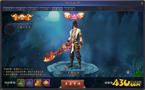 想要获得人气王称号吗?那就来43u《鸿蒙天尊》王者决战参与竞猜吧!下面就由小编来说说活动规则吧!
