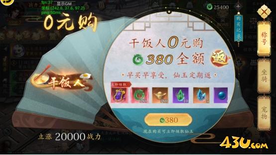 零元购是开服后开启的永久活动,可以通过消耗仙玉购买礼包,等待几天后,仙玉会通过邮件全额返还给玩家,从而实现0元购买礼包,机会不容错过!