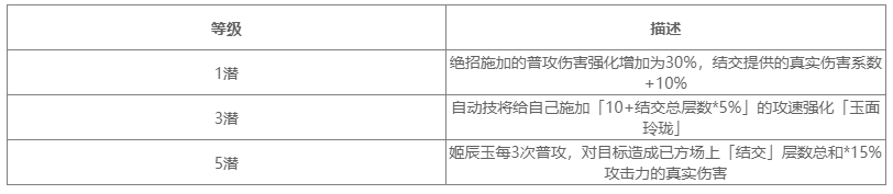 技能描述:每隔15秒(初始冷却5秒),姬辰玉给所有拥有「结交」的友方单位提供「玲珑弈心」增益,攻速提高「10+结交层数*10%」,持续15秒。